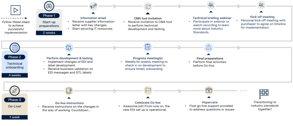 As a supplier, please be aware of two distinct delivery flows. Each flow is associated with a corresponding onboarding campaign used for the development and testing of new EDI messages and Global Transport label (GTL) for that specific flow.