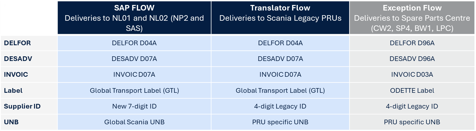 If you are live with the new set-up for SAP flow: If you have successfully completed the development and testing of new EDI message versions and the GTL for SAP flow, and have been approved and received go-live confirmation from Scania, you need to comply with the flows below.